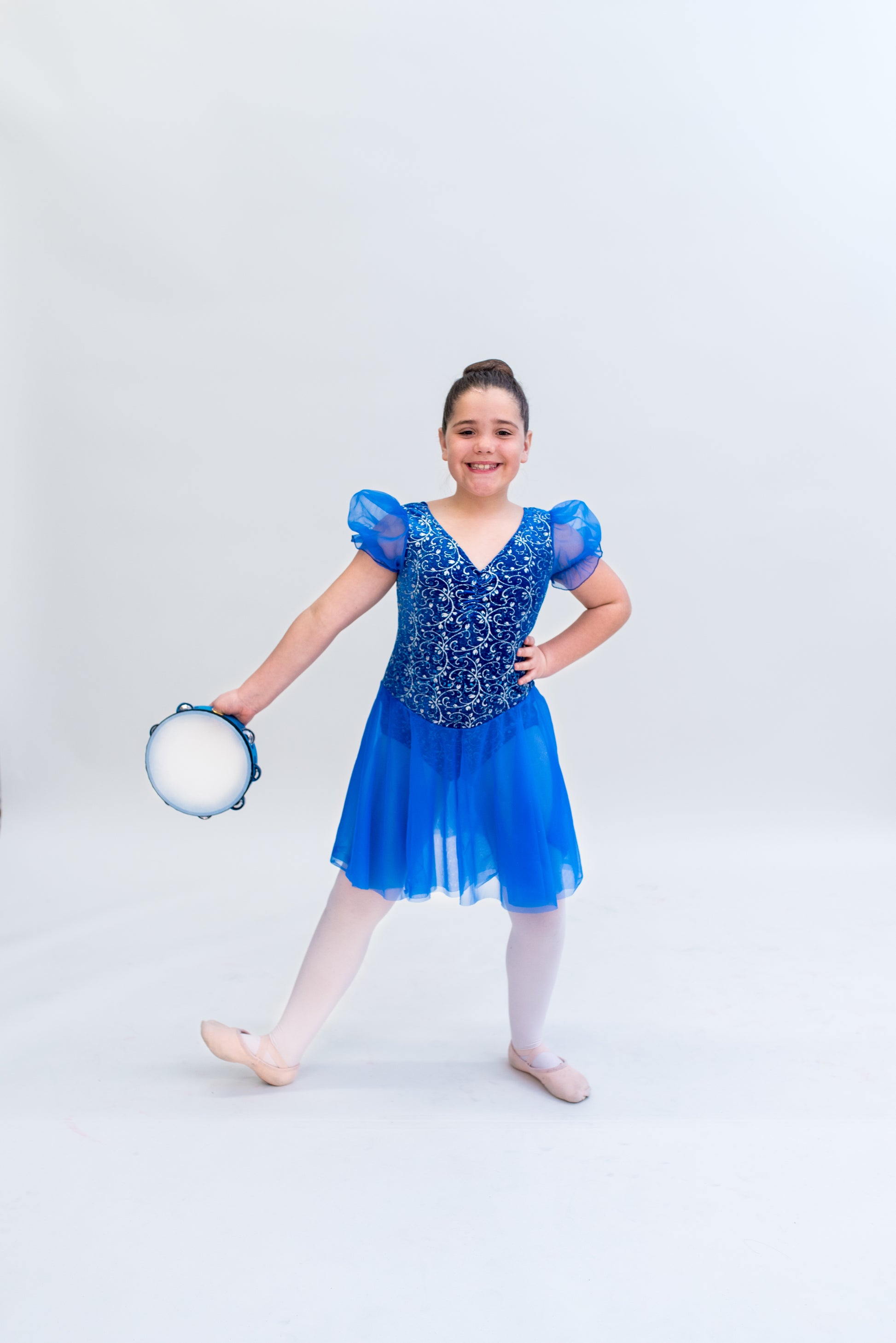 Blue 8" mylar head tambourine with thumbhole and 8 pairs of nickel silver jingles.